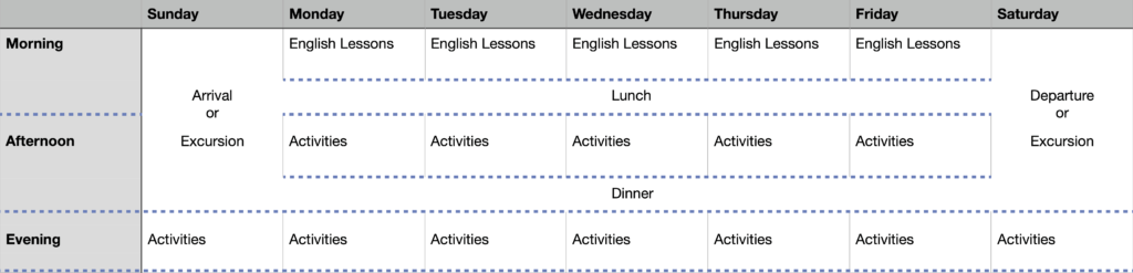 Students will participate in 15 hours of English courses per week.